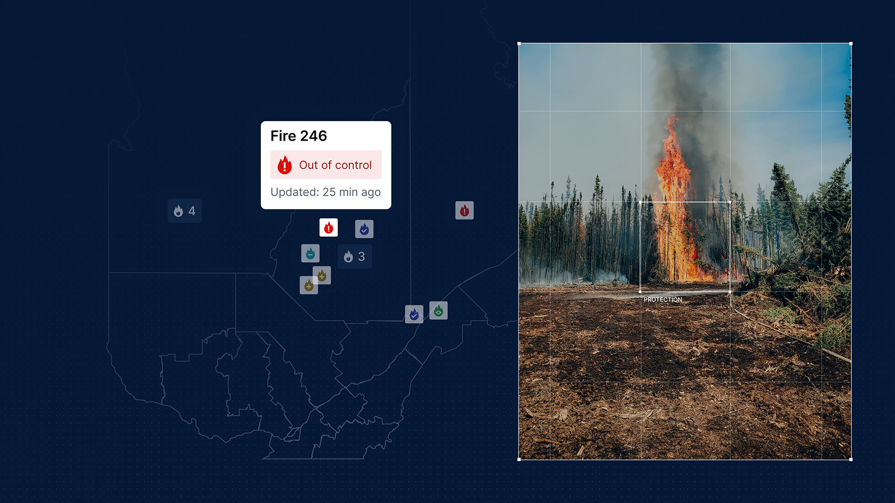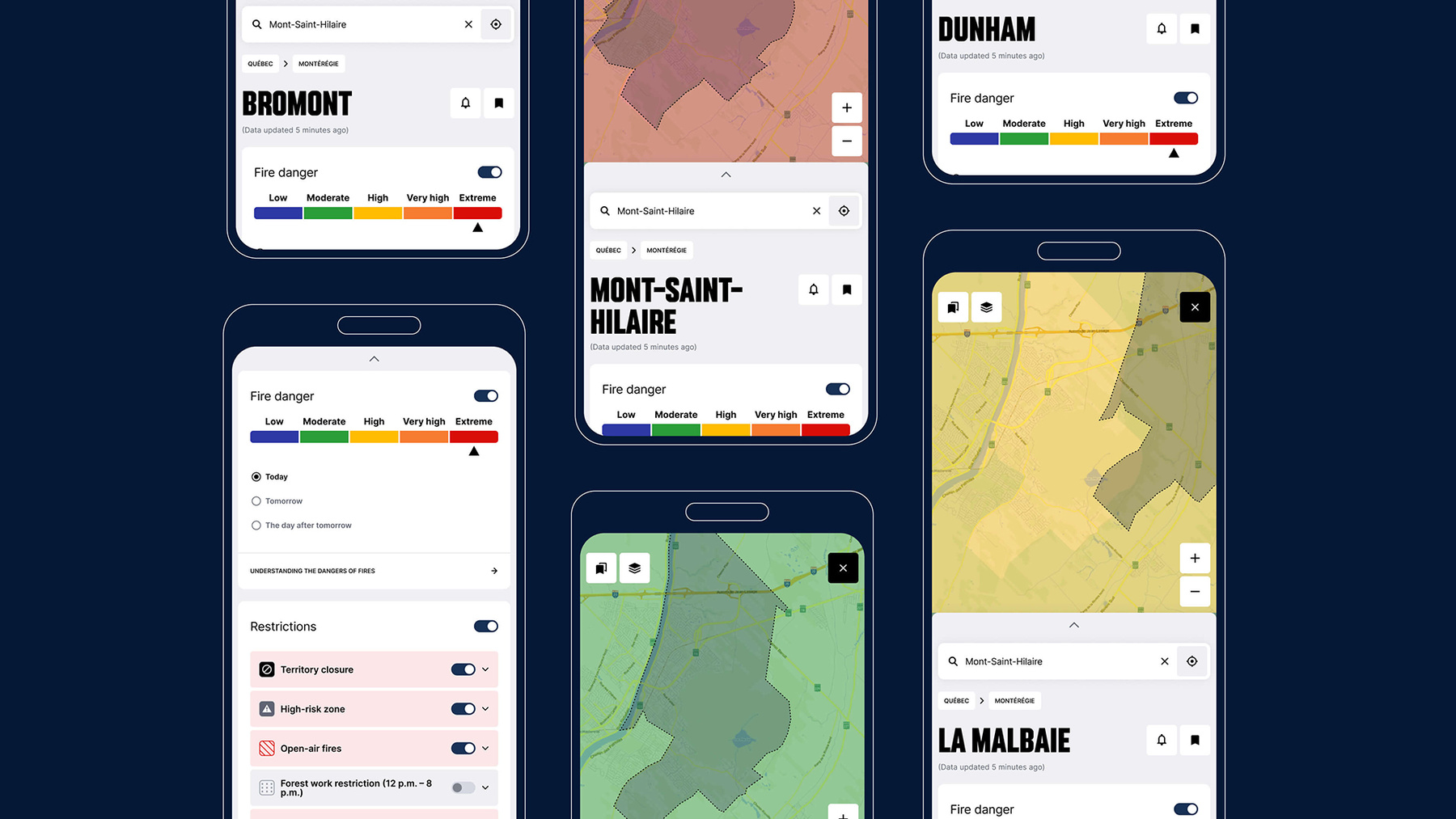 Architecturer une carte de l’activité des feux à l’échelle de la province et au chargement ultrarapide représentait une certaine prouesse technique, mais le véritable défi résidait dans la clarté visuelle. Nous avons conçu une expérience utilisateur·trice (UX) basée sur le « pire scénario » afin de garantir la lisibilité lorsque de multiples couches de données (fumée, foudre, périmètres d’incendie) se superposent. La mise à l’épreuve de ces extrêmes a donné naissance à un langage visuel composé d’icônes et de motifs distincts, qui communiquent l’urgence instantanément, peu importe la taille de l’écran.
