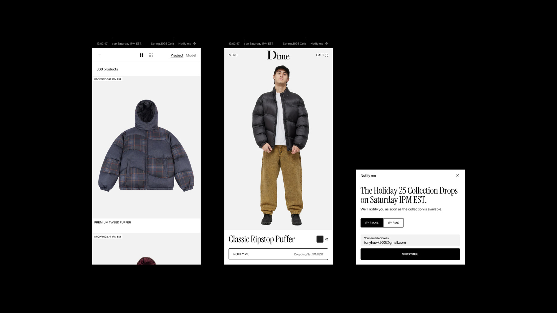 A primary objective was to amplify the signature product drop. To do so, we simplified the notification registration and improved the product listing pages and lookbook using a mobile-first approach. This created a premium sales experience that fully leverages the brand’s FOMO DNA.