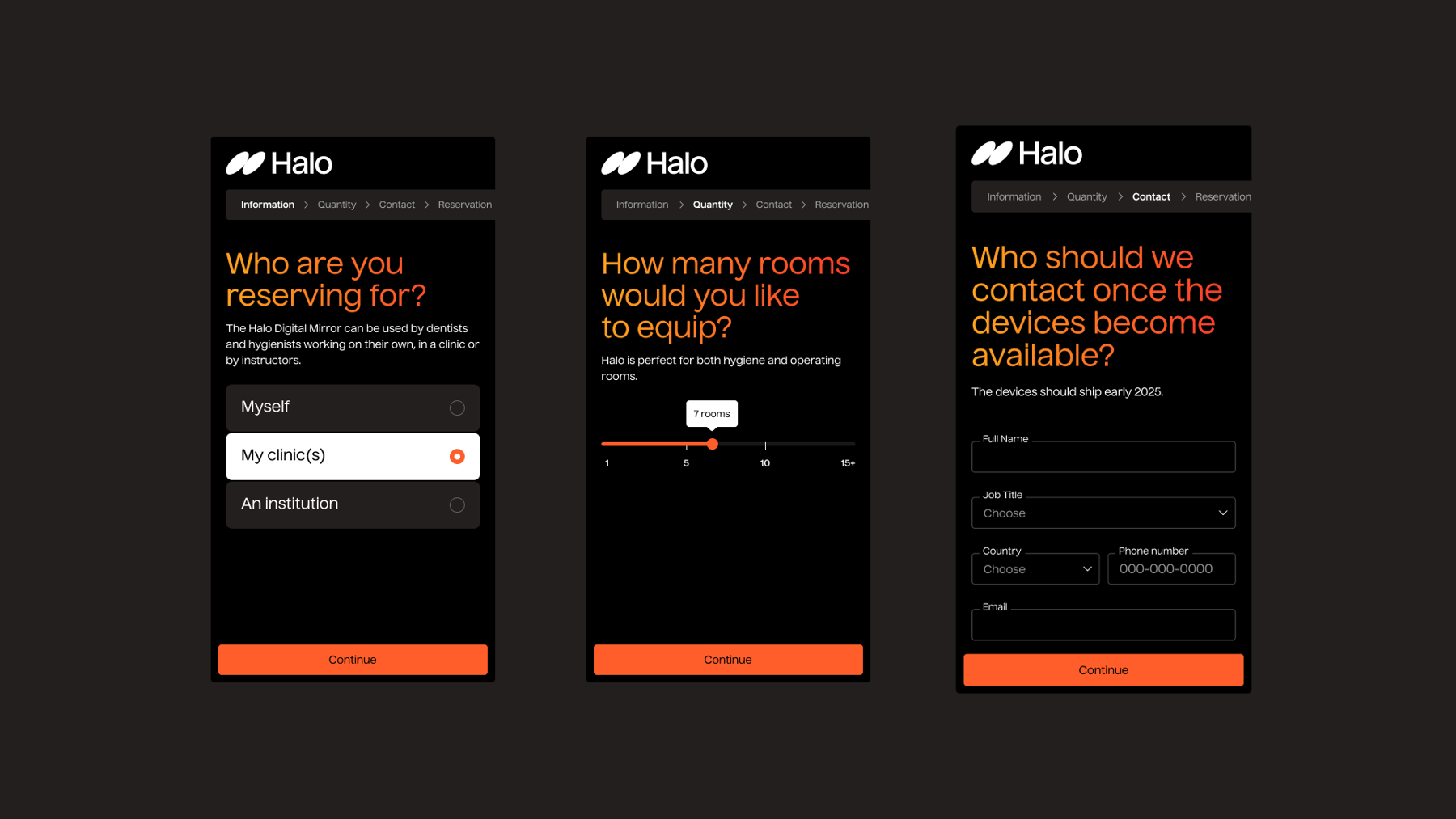 The shape and movement of the Halo Dental Mirror’s light inspired a custom visual language, replicating its distinctive oval shape at various angles and animating it with motion. To ensure autonomy, we built a pattern generator tool that allows our clients to create new assets seamlessly.