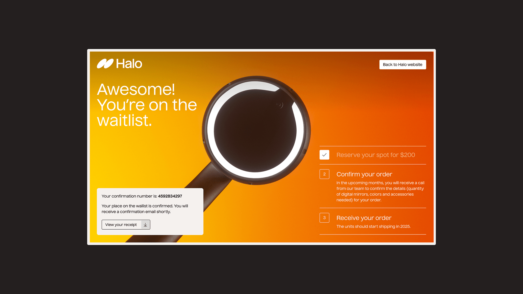 Like many startups, Halo’s vision was clear, but its brand experience wasn’t – and selling a product that’s never been seen before isn’t easy. We first worked together to create a world-class brand and design system that evokes innovation. The logo, based on the shape of the illuminated mirror, anchors a system of vibrant colours, crisp photography and high-fidelity 3D renders that encapsulate the brand’s innovative spirit. The result: a visual language that builds credibility and desirability, positioning Halo for long-term relevance.
