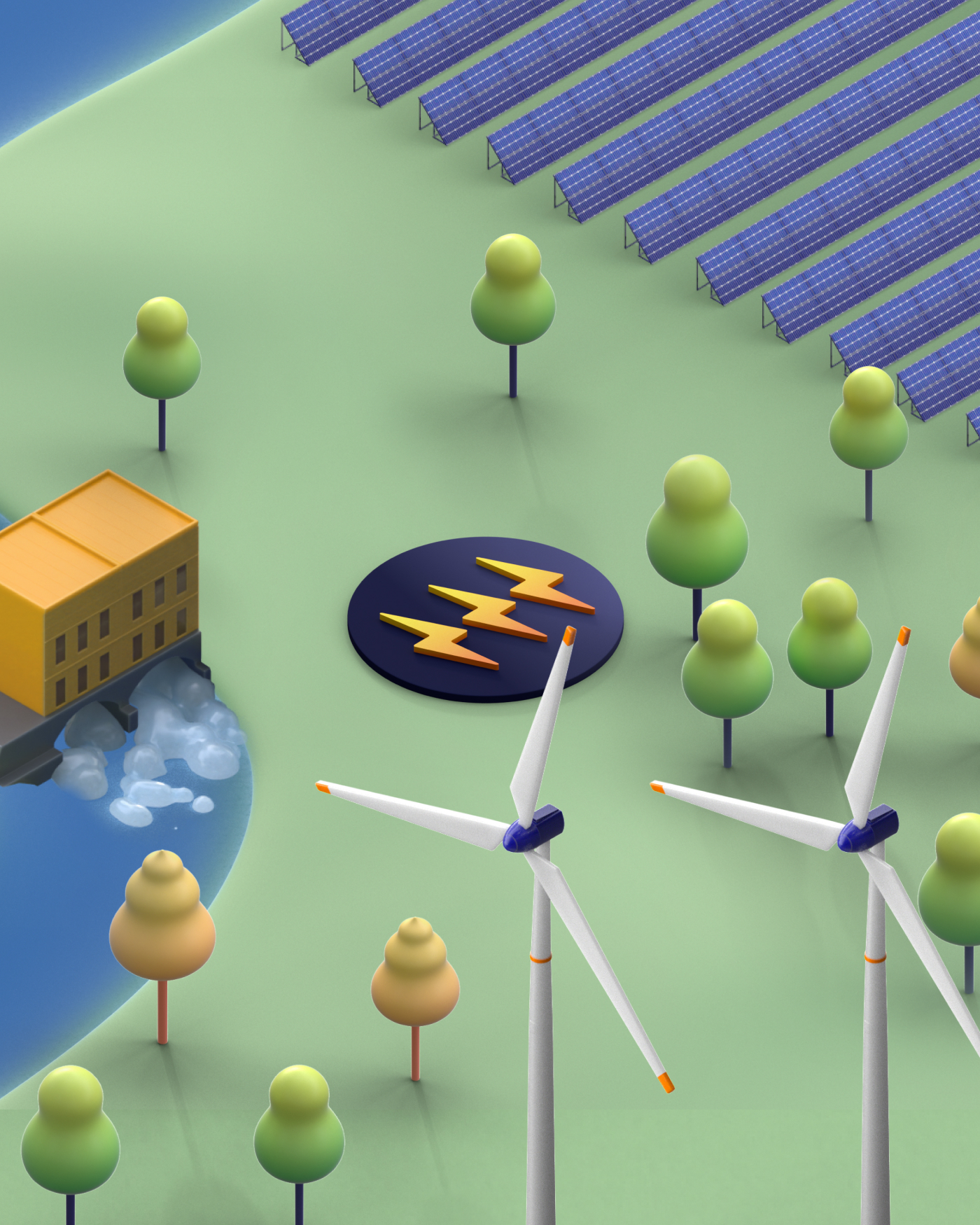 Using 3D was a first for the brand, so we began by defining an art direction that would align with Hydro-Québec’s global look and feel. Once the direction was established, we modelled the buildings on real-life installations using Blender, then textured and rendered them with Octane, creating a unique universe seemingly sculpted out of plastic